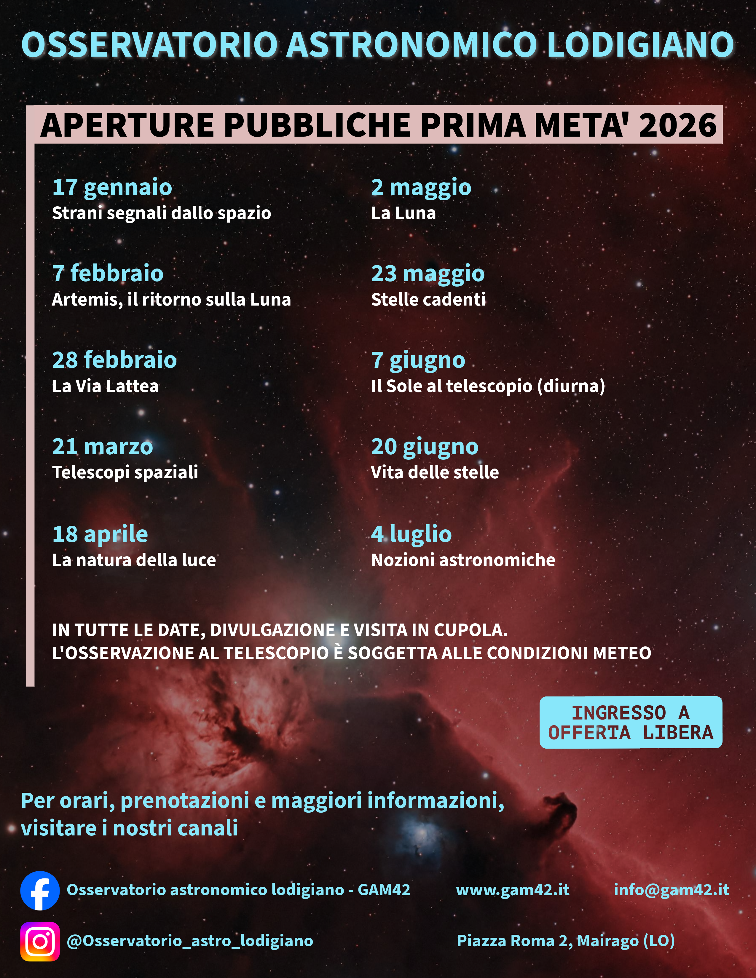 Attività all'Osservatorio nella prima metà 2026